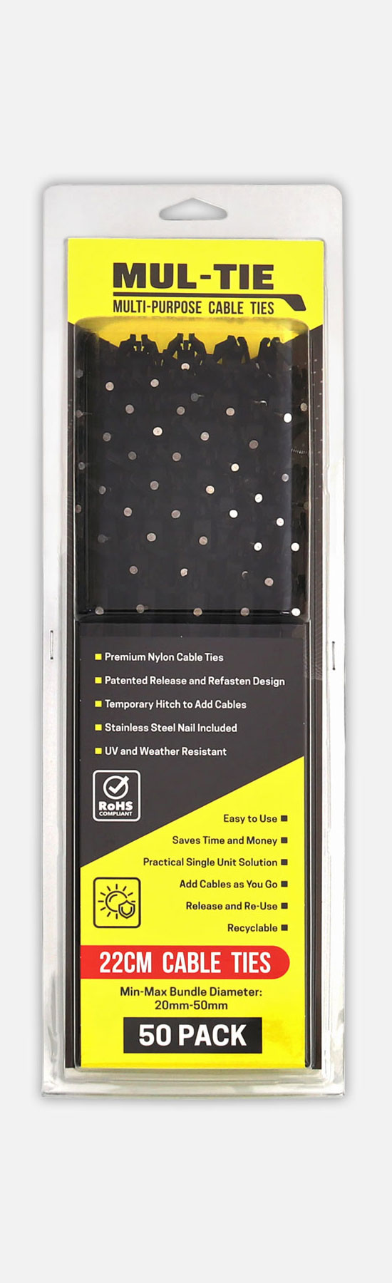 Mul-Tie™ is a game changer in the electrical industry. This revolutionary Mul-Tie™ makes cable management fast, tidier and more efficient.